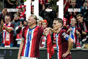 體育資訊09月20日訊 世預(yù)賽歐洲區(qū)I組第6輪,摩爾多瓦隊1-11慘敗挪威隊,哈蘭德5球2助。