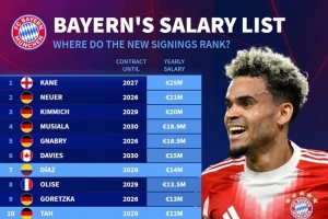 體育資訊9月20日訊 德國(guó)轉(zhuǎn)會(huì)市場(chǎng)列出了拜仁球員的年薪榜單,凱恩2500萬(wàn)歐居首,諾伊爾2100萬(wàn)歐次席,杰克遜600萬(wàn)歐。