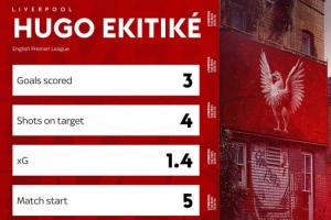 據(jù)媒體統(tǒng)計(jì),?;倏擞⒊_(kāi)局5場(chǎng)比賽皆首發(fā)出戰(zhàn),射正4次,預(yù)期進(jìn)球1.4粒,打進(jìn)3球。