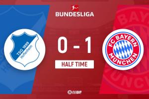 半場結(jié)束,拜仁暫1-0霍芬海姆。