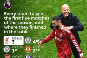 據(jù)英超官方統(tǒng)計(jì),英超歷史上共有14支球隊(duì)賽季開局5連勝(包括本賽季利物浦),此前做到這點(diǎn)的13支球隊(duì)之中,4支球隊(duì)最終贏得當(dāng)賽季英超冠軍,分別是切爾西(2次)、利物浦和曼城。