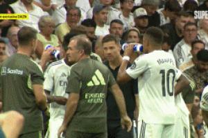 【阿斯:維尼修斯在被換下后摔掉水瓶表示不滿,舉起雙臂抱怨】
