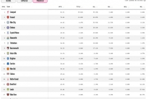 以下為英超各隊奪冠概率具體預測情況(僅統(tǒng)計概率超1%球隊):