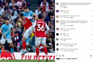 曼城球員魯本-迪亞斯也在社媒曬出本場照片,配文寫道:“為今天全隊的拼搏精神感到驕傲,很失望沒能拿到3分,我們帶著能量與斗爭精神繼續(xù)前進!”