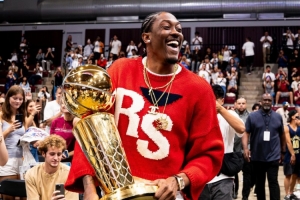 體育資訊9月22日訊 雷霆球員杰倫-威廉姆斯帶著總冠軍獎杯回到了母校圣克拉拉大學(xué),在那他得到了全校師生的熱烈歡迎。