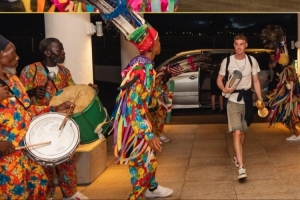 圣基茨和尼維斯聯(lián)邦副總理杰弗里-漢利和旅游部長瑪莎-T-亨德森迎接了帕爾默,一支當?shù)貍鹘y(tǒng)表演團隊也到場為其獻上地道的圣基茨式歡迎。帕爾默在降落后表示:“在贏得世俱杯后來到圣基茨,感覺特別有意義。這里是我祖父對足球熱愛的開始,這個島既美麗又寧靜,我迫不及待想要探索這里的山脈、雨林和大海,還要品嘗當?shù)氐拿朗??!?/p>