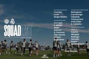賽前,皇馬官方社媒公布了此役球隊(duì)大名單: