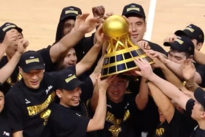 榮耀瞬間!香港金?;@球俱樂部大比分3-1戰(zhàn)勝長沙勇勝,NBL聯(lián)賽兩連冠,球隊捧杯慶祝奪冠。