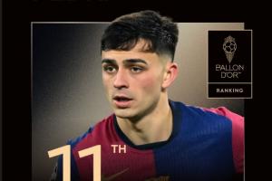 體育資訊9月23日訊 不久前,巴薩球員費(fèi)蘭-托雷斯轉(zhuǎn)發(fā)了佩德里獲得金球獎(jiǎng)第11名的海報(bào)。