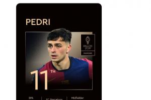 體育資訊09月23日訊 2025年金球獎(jiǎng)獎(jiǎng)項(xiàng)公布,巴薩中場(chǎng)佩德里排名第11,沒有進(jìn)入前十。