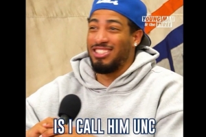 主持人在引導(dǎo)問題的時(shí)候,另外一位嘉賓斯派克-李插話到:“庫里多少歲了?”哈利伯頓笑著說:“我不知道,我只知道我叫他叔叔(uncle),我不知道他多少歲。他可能36、35還是37?”