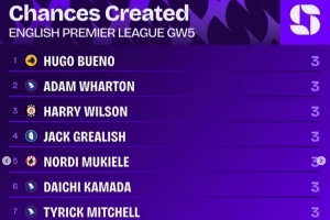 體育資訊9月24日訊 英超第5輪戰(zhàn)罷,squawkafootball列各項數(shù)據(jù)排行,在創(chuàng)造機會方面,狼隊后衛(wèi)烏戈-布埃諾等8名球員各創(chuàng)造3次機會。