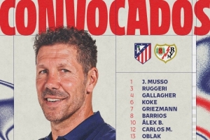 體育資訊9月24日訊 北京時(shí)間明天凌晨,馬競(jìng)將在西甲第6輪比賽中主場(chǎng)對(duì)陣巴列卡諾,馬競(jìng)公布了此役的球員名單。巴埃納復(fù)出,索爾洛特停賽缺席,吉梅內(nèi)斯、阿爾馬達(dá)、卡爾多索因傷繼續(xù)缺席。