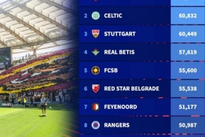 體育資訊9月24日訊 德轉(zhuǎn)盤點了本賽季歐聯(lián)杯參賽球隊主場最大可上座人數(shù)榜單,其中羅馬主場居首,具體榜單如下: