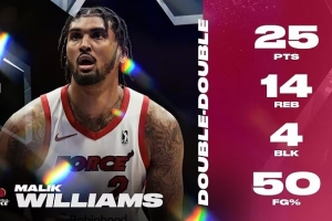 威廉姆斯在2023-24賽季為猛龍隊(duì)出戰(zhàn)了7場(chǎng)比賽。上賽季,他在發(fā)展聯(lián)盟場(chǎng)均能得到14.8分9.1籃板1.3次蓋帽1.2次搶斷。
