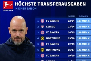 體育資訊7月16日訊 據(jù)德國轉(zhuǎn)會(huì)市場統(tǒng)計(jì),勒沃庫森夏窗引援支出突破1億歐元,成為第5家單賽季引援支出多于1億歐的德甲俱樂部。