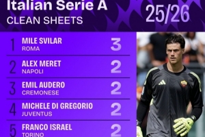 體育資訊9月26日訊 據(jù)Squawka的數(shù)據(jù)統(tǒng)計,在2025年的24場意甲聯(lián)賽中,羅馬門將斯維拉爾保持了14場零封,比其他任何門將至少多3場。