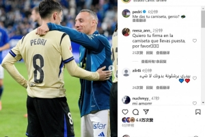 巴薩中場(chǎng)佩德里更新社媒動(dòng)態(tài),曬出與皇家?jiàn)W維耶多40歲中場(chǎng)卡索拉的賽后合照,對(duì)其表達(dá)敬意,配文:“天才,能把你的球衣給我嗎?”
