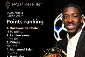 登貝萊今年28歲,在24/25賽季,他共代表巴黎圣日耳曼出場(chǎng)53次,打進(jìn)35粒進(jìn)球,送出16次助攻。隨巴黎圣日耳曼獲得4項(xiàng)冠軍:法國(guó)杯、法超杯、法甲和歐冠;國(guó)家隊(duì)方面,登貝萊在評(píng)選周期內(nèi)代表法國(guó)國(guó)家隊(duì)出場(chǎng)7次,打進(jìn)2球。個(gè)人榮譽(yù)層面,登貝萊上賽季獲得了法甲金靴、法甲最佳球員、歐冠最佳球員。