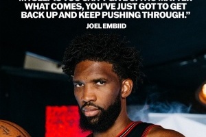在照片上,附有恩比德的一段話:“我一直告訴自己的一件事就是,你不能放棄。無(wú)論遇到什么,你都必須重新站起來(lái),堅(jiān)持下去?!?/p>