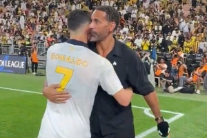 C羅的前曼聯(lián)隊(duì)友費(fèi)迪南德也來(lái)到現(xiàn)場(chǎng)觀戰(zhàn),并和C羅擁抱寒暄。