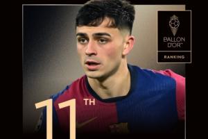 體育資訊09月27日訊 今日《法國足球》官方公布了金球獎(jiǎng)評選的投票細(xì)節(jié),其中西班牙/巴薩中場佩德里在100位記者中僅獲得了31人的投票,最終獲得124分,位列金球第11名,落后第10的努諾-門德斯47分。