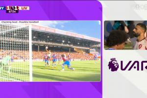 體育資訊09月28日訊 英超第6輪,水晶宮vs利物浦。比賽第87分鐘,基耶薩替補(bǔ)破門(mén)為利物浦一度1-1扳平比分,VAR檢查了此球過(guò)程中薩拉赫的疑似手球,并確認(rèn)進(jìn)球有效。