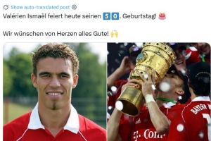 體育資訊9月28日訊 今天是前法國國腳瓦勒里安-伊斯梅爾50歲生日,拜仁官推也曬出其昔日身披球隊?wèi)?zhàn)袍奪冠照片為其送上祝福。