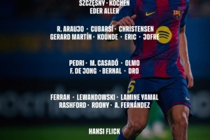 體育資訊9月28日訊 巴薩本輪西甲將迎戰(zhàn)皇家社會,球隊官方也公布了本場球隊大名單,亞馬爾回歸,拉菲尼亞、門將霍安-加西亞缺席。具體如下: