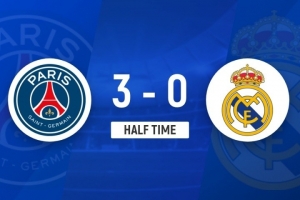 上半場(chǎng)補(bǔ)時(shí)3分鐘。半場(chǎng)戰(zhàn)罷,巴黎3-0皇馬。