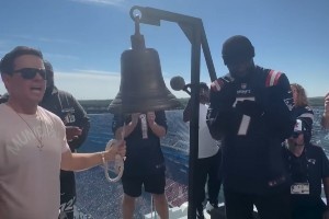 布朗還和來(lái)自波士頓的好萊塢影星馬克-沃爾伯格一起為比賽進(jìn)行了敲鐘儀式。