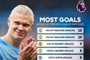 數(shù)據(jù)顯示,哈蘭德本賽季前6輪攻入8個(gè)英超進(jìn)球,這一數(shù)據(jù)可以排進(jìn)英超單賽季前六輪射手榜的前9。距離哈蘭德自己在2022/23和2024/25賽季創(chuàng)下的6輪10球尚有差距。哈蘭德加盟曼城以來4個(gè)賽季前六輪的進(jìn)球數(shù)分別為:10、8、10、8。