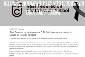 皇家馬德里俱樂(lè)部、其主席及董事會(huì)對(duì)科林德雷斯俱樂(lè)部19歲的門將勞爾-拉米雷斯的逝世深表哀悼。