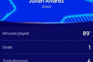 本場比賽阿爾瓦雷斯1粒進球2次助攻,賽后他也當(dāng)選歐冠官方評選出的本場最佳球員。