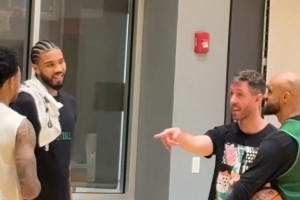 體育資訊10月2日訊 凱爾特人新賽季訓練營繼續(xù)進行,正在養(yǎng)傷的塔圖姆再次來到訓練場。