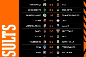 體育資訊10月3日訊 歐聯(lián)杯聯(lián)賽階段第二輪比賽戰(zhàn)罷,羅馬0-1不敵里爾,費(fèi)內(nèi)巴切2-1戰(zhàn)勝尼斯,巴塞爾2-0擊敗斯圖加特,費(fèi)耶諾德0-2落敗于維拉。