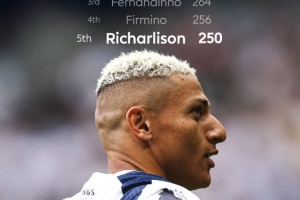 體育資訊10月4日訊 在本輪英超熱刺2-1擊敗利茲聯的比賽中,理查利森替補登場,這也是他生涯第250次在英超登場。以下為巴西球員在英超登場次數榜: