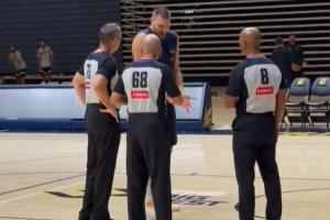在訓(xùn)練賽結(jié)束后,尼科拉-約基奇花了至少10分鐘與裁判們進(jìn)行了交流和示范教學(xué)。