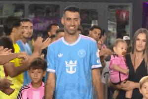 美職聯邁阿密4-1新英格蘭革命賽后,布斯克茨帶著妻子和三個孩子參加退役儀式。