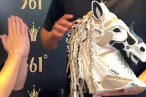 體育資訊7月17日訊 今日約基奇已抵達(dá)中國,開啟今夏中國行活動(dòng)。期間他收到了粉絲用球鞋做成的創(chuàng)意馬頭禮物。