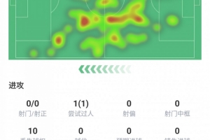 射門0、嘗試過人1次并且成功、丟失球權(quán)10次
