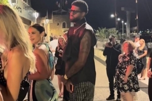 喬治在夜店門口排隊(duì),還戴著護(hù)膝。身前站著的是他的妻子Daniela