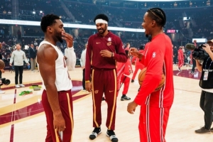 體育資訊10月8日訊 騎士官方社媒曬出了賽前米切爾、阿倫和前隊(duì)友奧科羅聊天的照片,并配文:“感覺(jué)這里變冷了。歡迎回來(lái),Ice(奧科羅外號(hào))!”
