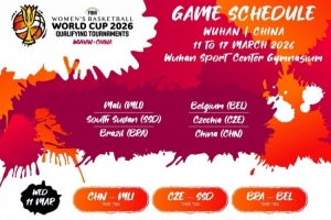 2026女籃世界杯預選賽武漢賽區(qū)日程出爐,比賽屆時將在武漢體育中心體育館進行,每個比賽日三場比賽。中國隊日程安排如下(開球時間待定):
