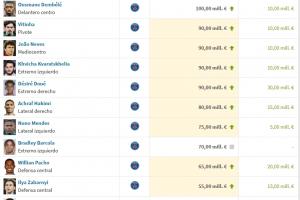 體育資訊10月10日訊 今日德轉(zhuǎn)更新法甲球員身價(jià),登貝萊身價(jià)上漲至1億歐排名法甲第1,維蒂尼亞、內(nèi)維斯、克瓦拉茨赫利亞、杜埃四人身價(jià)高達(dá)9000萬(wàn)歐,法甲身價(jià)前10位都為巴黎球員。