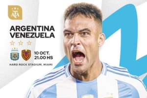 體育資訊10月10日訊 北京時(shí)間周六早間的國(guó)際足球友誼賽,阿根廷將會(huì)和委內(nèi)瑞拉交手,這場(chǎng)比賽會(huì)在邁阿密的硬石體育場(chǎng)進(jìn)行。目前,阿根廷國(guó)家隊(duì)發(fā)布了本場(chǎng)比賽的預(yù)熱海報(bào),勞塔羅單人出鏡。