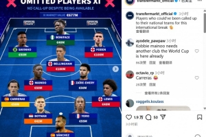 體育資訊10月11日訊 德轉(zhuǎn)列出落選本期國家隊的最貴陣容,總價高達(dá)6.77億歐。