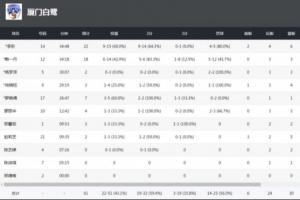 球隊方面,全隊整體在進攻端依然很拼,共有9次搶斷;兩分球32中19,命中率高達59.4%。球員方面,李彤半場就得到12分,全場砍下全隊最高的22分,另有6籃板;賴一丹雖然罰球丟了不少,但最后兩罰頂住壓力,全場貢獻18分3籃板3搶斷;另外羅曉倩、廖麗華等人也都為勝利做出自己的貢獻。