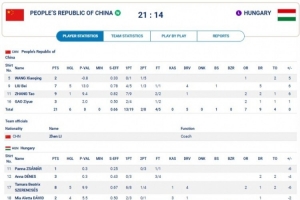 中國(guó)21-14匈牙利,張濤9分,劉貝7分5籃板。匈牙利塔瑪拉-碧翠克斯-塞倫切什空砍8分。