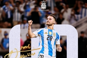 此役是麥卡利斯特為阿根廷隊(duì)出戰(zhàn)的第40場(chǎng)比賽,阿根廷隊(duì)官方社媒曬出海報(bào),對(duì)他表示祝賀。